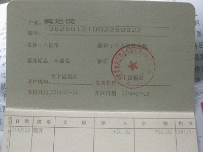 開戶行:上猶縣農(nóng)村信用合作聯(lián)社寺下信用社